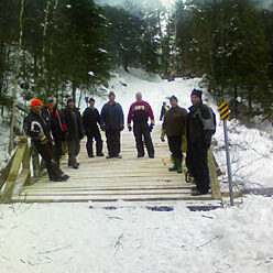 The Ministry of Natural Resources was approached, and with assistance from Robbie Robertson, Bill Brown, and John Winters, approval for the trail, and permission to cross the dam was granted.