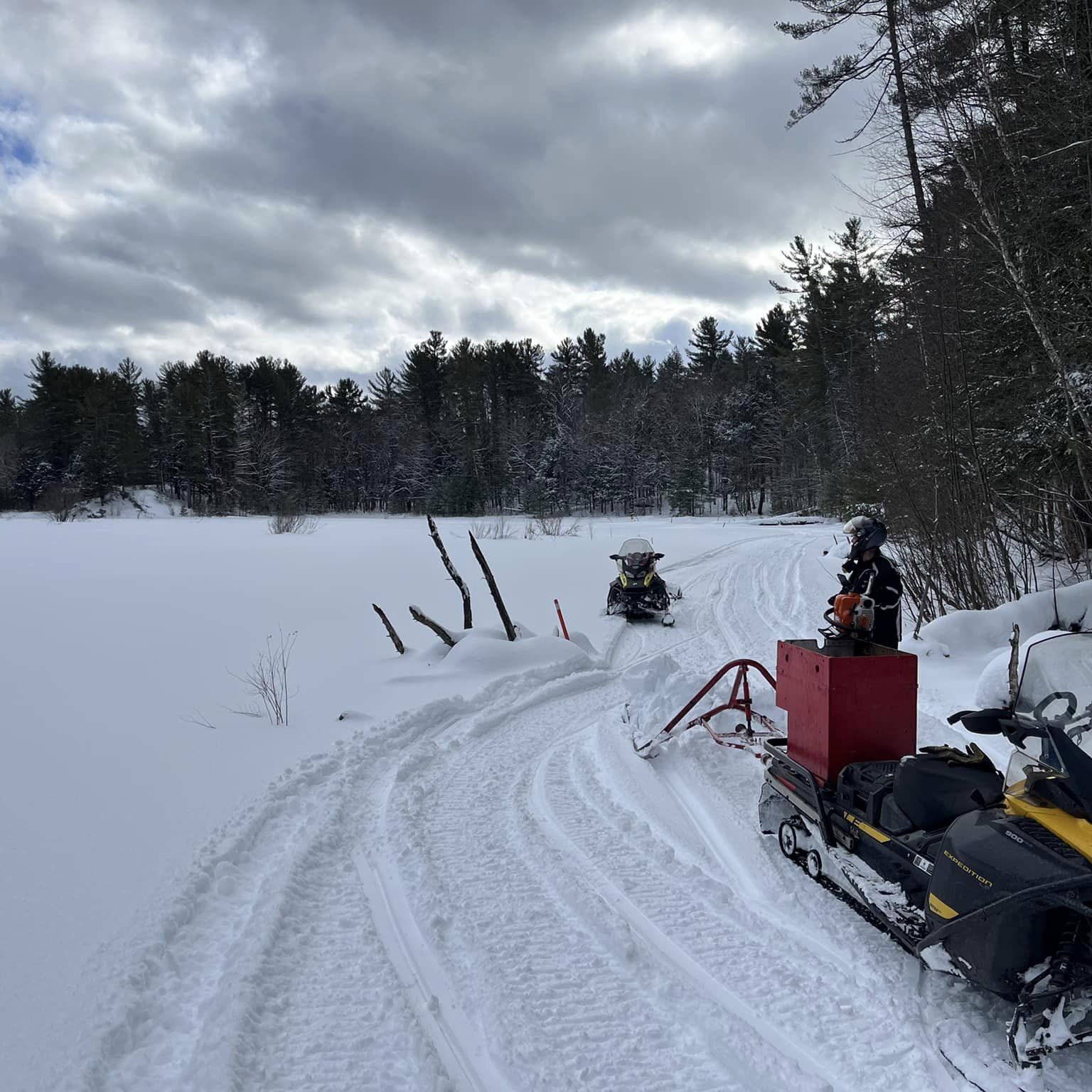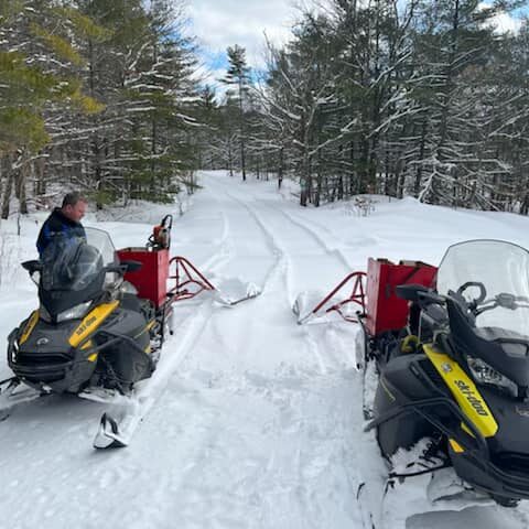 John and Charlie took it upon themselves to improve the footpath to accommodate snowmobiles. Once this was done, some cottagers in Coulters Bay decided that they would also like a trail.